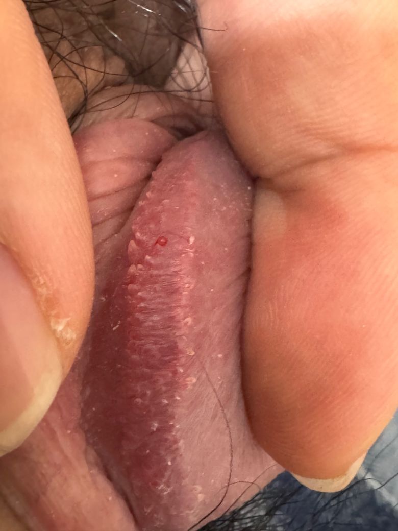 사진 보시묜 출혈도 살짝 있어요 물집이나 수포 같은 건 없고 전에 병원에 갔늘땐 양구진이라는 진단을 받았는데 최근에 자주 만져서 그런지 갑자기 따갑고 출혈이 가끔 나더라구요 마지막 성관계는 1주일 됐습니다
