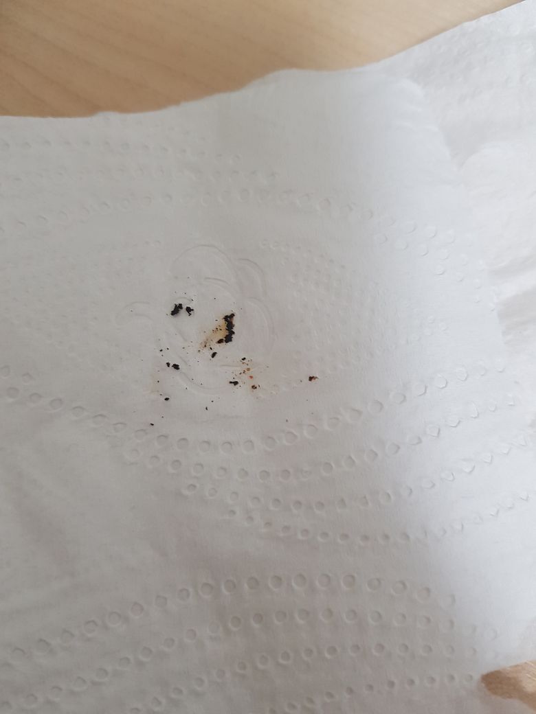 사진에 보이는 것처럼 검은색 점? 같은 것들이 많고 뭉개보면 저렇게 으스러지는데