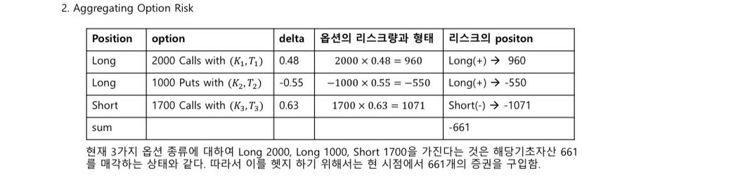 따라서, 델타 값은 음수이지만 리스크량이 양수로 변하는 이유는 포지션 수량과 델타 값의 부호가 상쇄되어 계산되기 때문입니다.