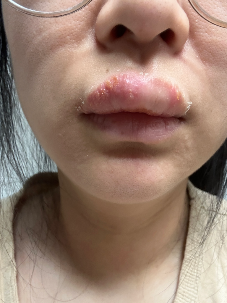 헤르페스에 의한 증상은 맞다고 판단됩니다. 일단 약을 충분히 드시고 나서 입술의 염증이 좋아지는지 기다려 볼 수 있을 것 같습니다. 몇일 기다려 보시면 어떨까 싶네요.