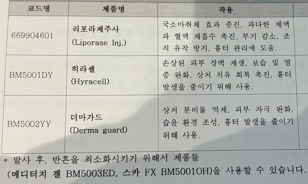 올려주신 사진은 마취제, 파상풍주사의 성분이 아닙니다. 올려주신 사진에 나와있는 약제들은 마취제를 잘 퍼지게 해주는 약제와 피부재생을 돕는 약제들입니다.