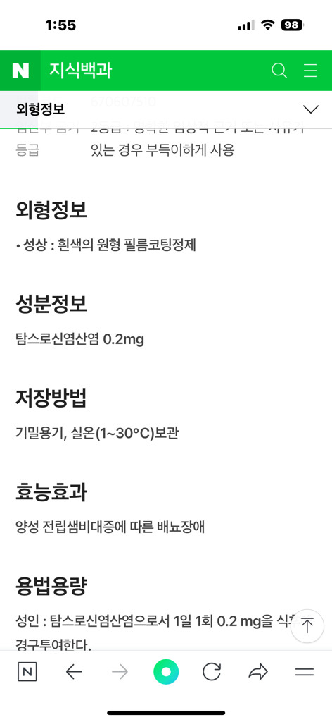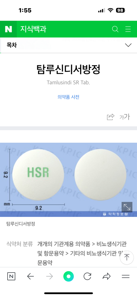 탐루신디서방정이라는 약은 탐스로신이라는 성분의 약이고 구역구토 부작용이 흔한 편이에요.