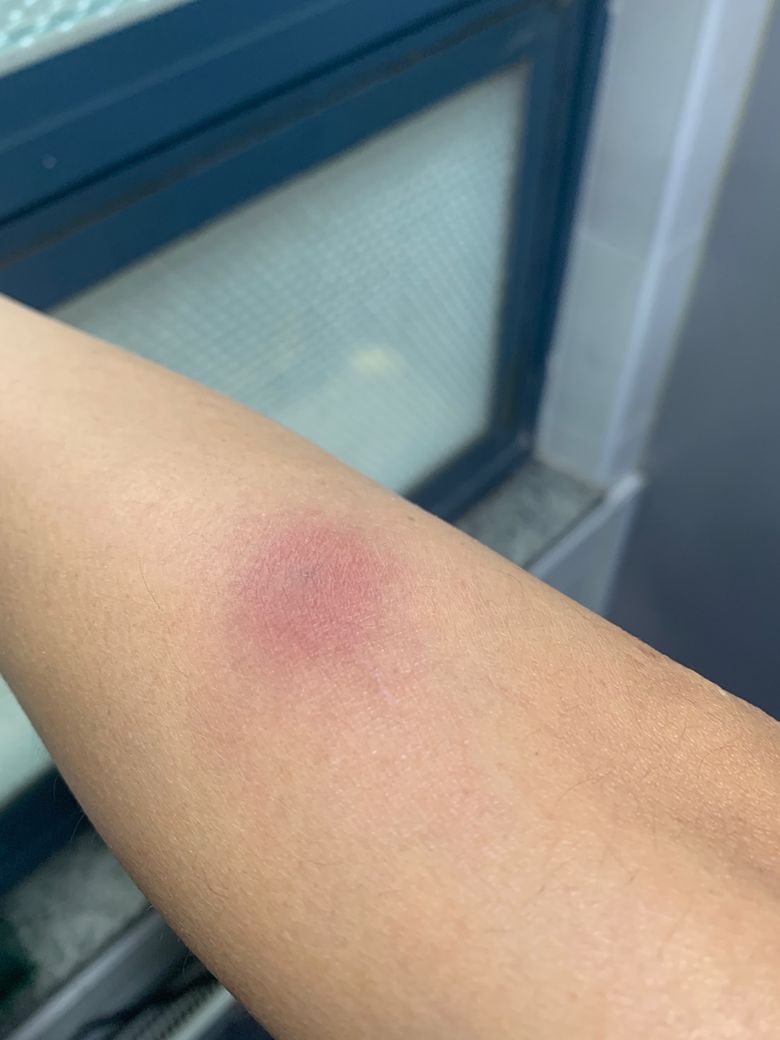 팔이 아파서 보니까 약간 붉고 멍울같은게 잡혔는데 누르면 아팠습니다.