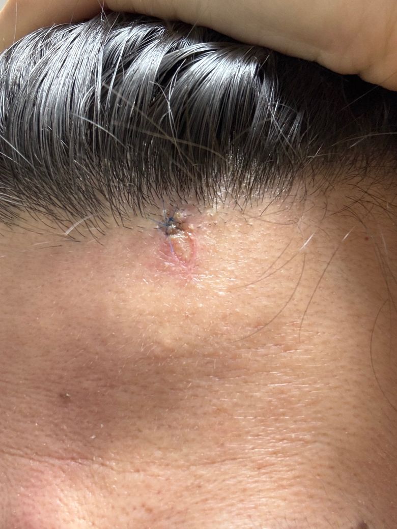 이마에 찍혀서 상처났는데 잘 아물고 있나요?