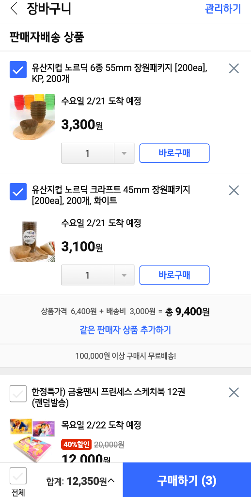 그래서 택배비가 있는 물건이라면 각각 택배비가 포함된 가격으로 결제를 해야 합니다.