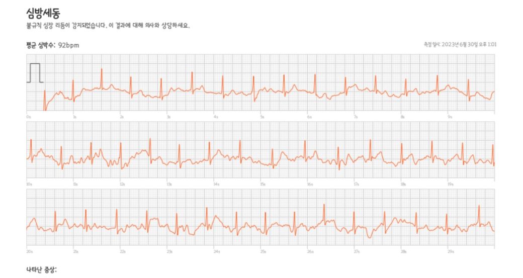 이후 평일 낮에 별증상 없을때 측정해봤는데 계속 심방세동이 나옵니다. 측정결과입니다 심방세동이 맞을까요?
