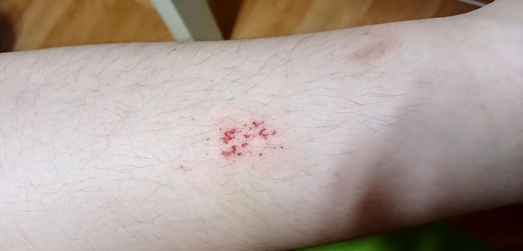 사진을 봤을 때는 작은 까진 상처(excoriation)으로 보입니다.