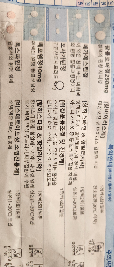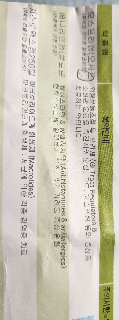 알러지약이 겹치더라도 문제되지는 않지만 위장약인 모스프리정이랑 모사가틴정이 겹치기때문에 이 약은 한개만 먹어야해요.