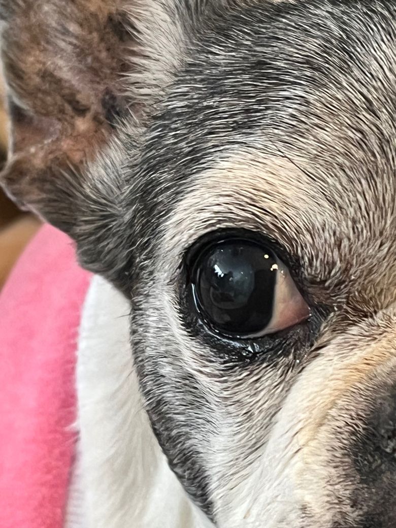 눈이 전반적으로 흰 색을 띄지는 않지만 저렇게 특정 모양이 생겼는데, 노령견이라 수술이 어려울 듯합니다ㅠㅠ 안약처방으로 가능한 증상일까요?