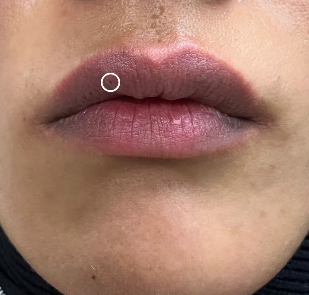 사진 주의) 입술에 갑자기 새까만 점이 생겼어요.