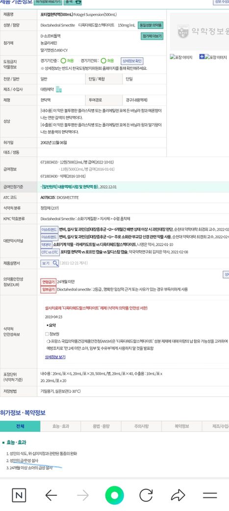 포타겔현탁액은 위장내 불순물을 흡착시켜 내보내주는 효능으로 주로 설사를 멈추게하는 지사제로 사용됩니다