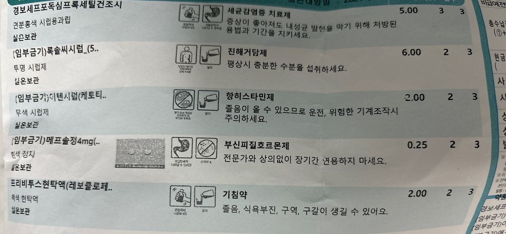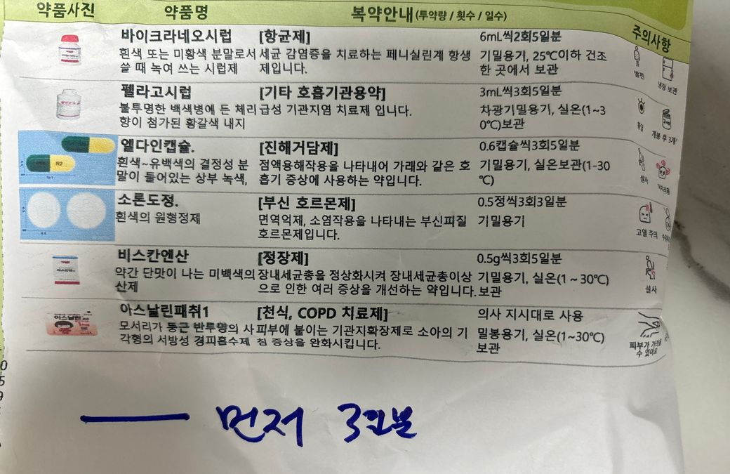 소아과에서 어제지은약으로 오늘 오전 6시복용