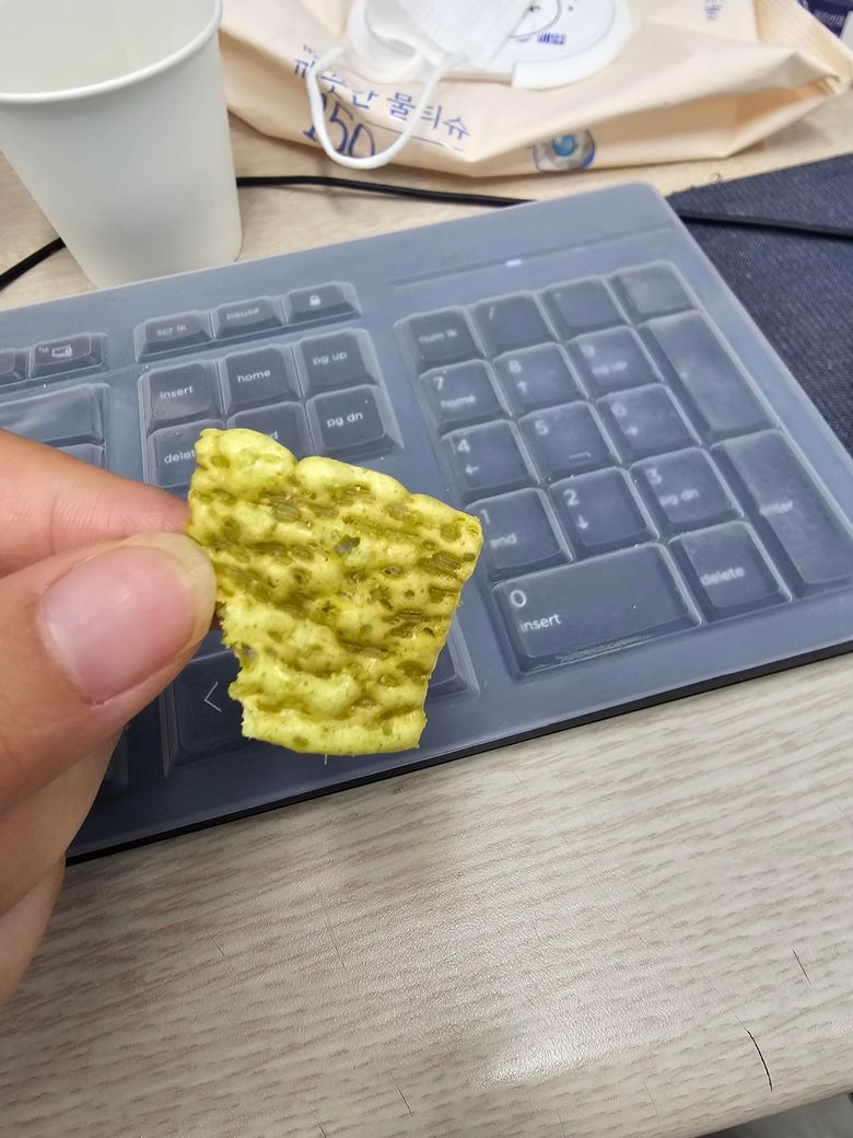 뻥튀기 종류 같은데 먹으면 고소하고 약간의 콘칩맛이 느껴저서