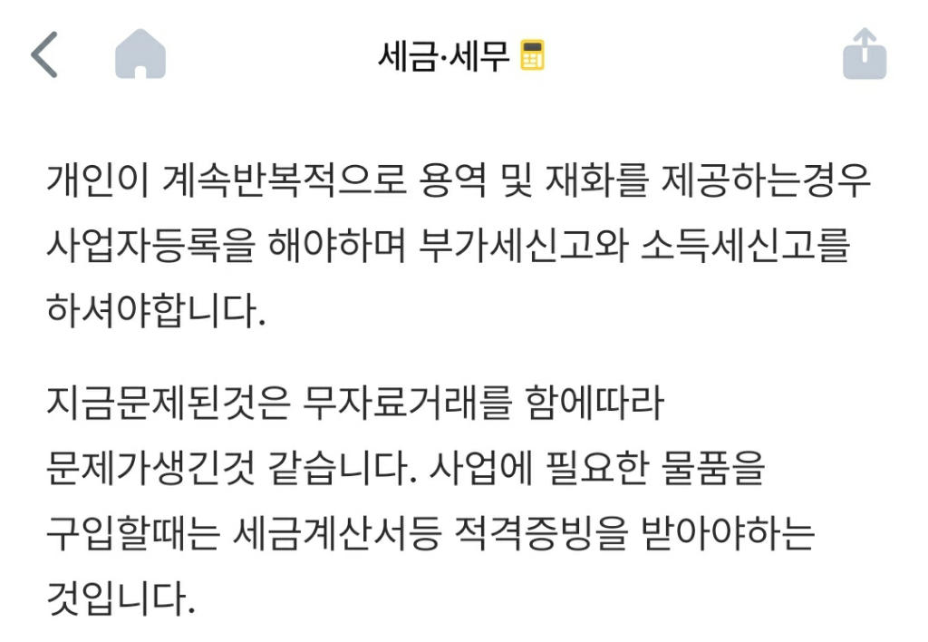3. 사업자가 세금계산서를 정상적으로 발행했다면 문제될 것은 없습니다.