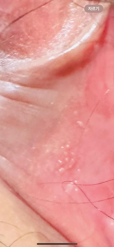 자세히 보면 수포는 아니고 돌기같이 엄청 쪼그맣게 튀어나와 있습니다. 질 주름 같기두 하구요
