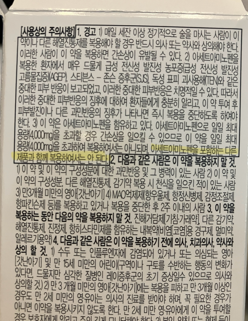 위 주의사항은 성분이 겹치니 과도한 복용을 할 경우를 대비하여 적혀있는 것이라 보시면 됩니다.
