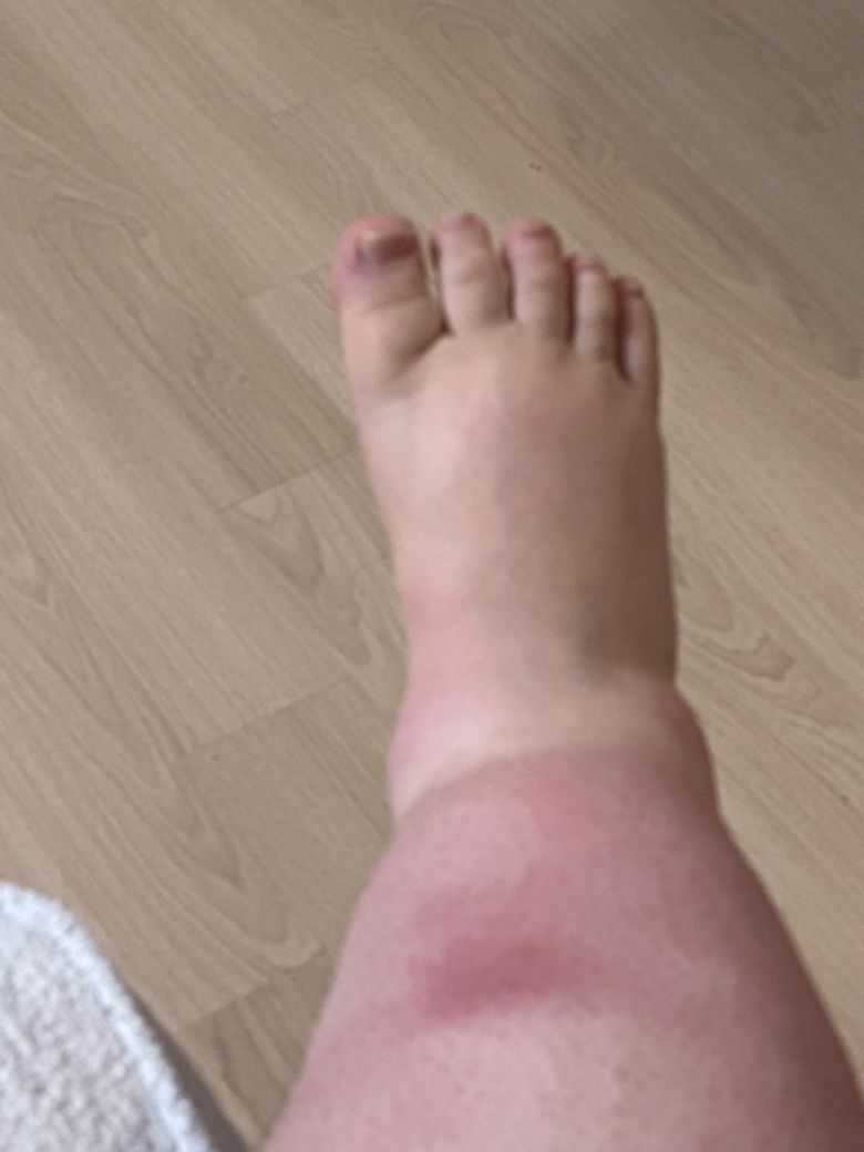 양쪽 종아리 모두 유독 빨갛게 되어있는부분 눌러보면 아프고 열감이 있어요.