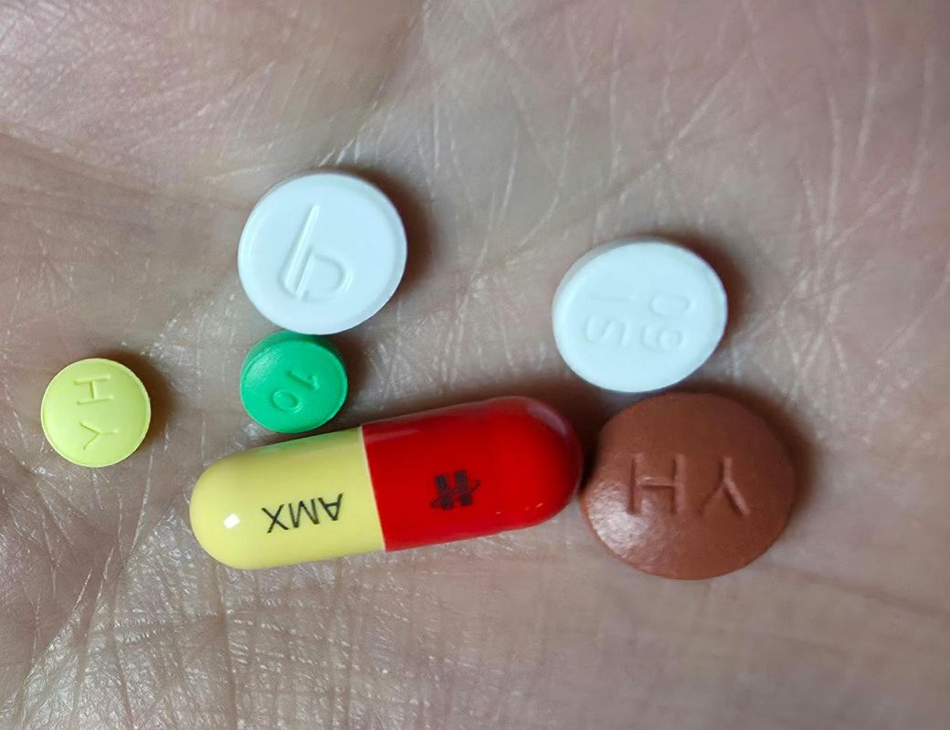 빨강 노랑 캡슐 - 휴온스아목시실린캡슐 (아목시실린 성분의 항생제)