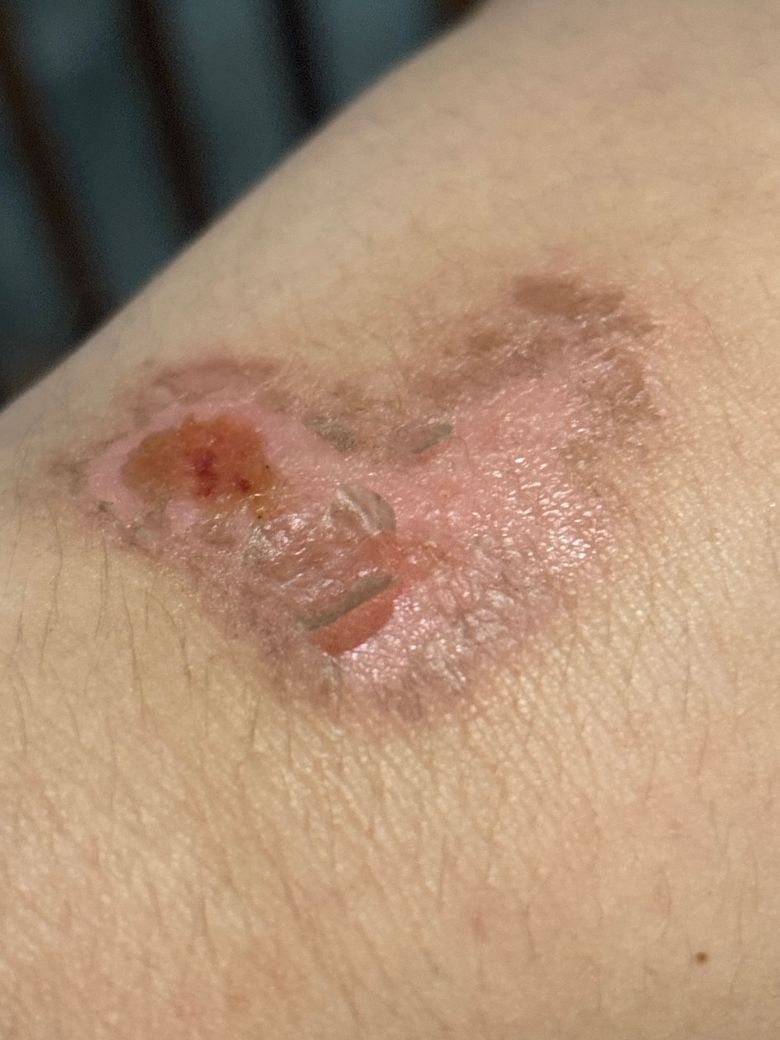 굳이 떼지 않으시고 적절히 소독하기만 해도 자연스럽게 회복되어질 상처라고 생각됩니다.