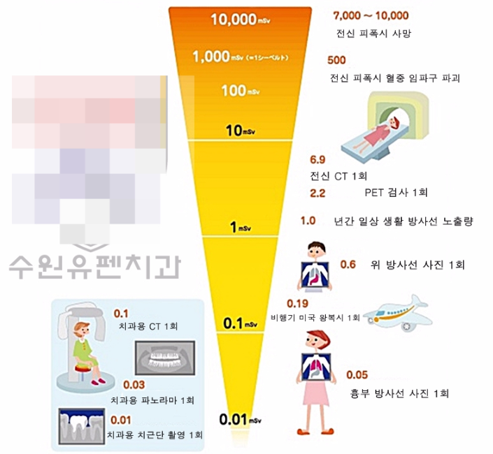 그러니 필요한 검사를 권고받았다면 찍어보란 말씀을 드리고 싶습니다. 발견하지 못한 문제가 추후에 더 큰 합병증으로 다가올 수 있고 그것은 방사선 노출보다 훨씬 큰 문제이기 때문입니다.