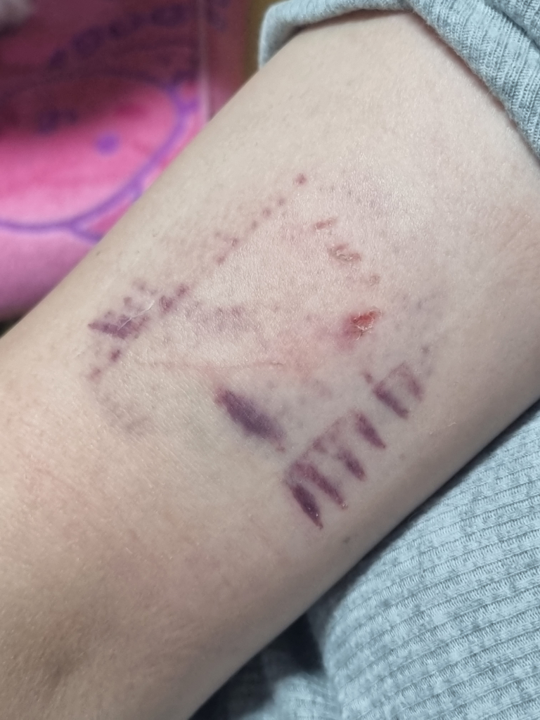 상처 자체는 크지 않지만 멍이 든 상황으로 보입니다. 예방접종을 마친 애완견이라면 광견병에 대한 걱정은 하지 않아도 괜찮겠고, 상처의 깊이로 보아 파상풍의 위험도 크지는 않아보입니다. 만약 파상풍 예방접종을 하지 않은 상황이라면 1회 접종으로 10년간의 예방효과를 얻을 수 있으니 이번 기회에 접종해보시고 멍든 부위가 붉어지고 부어오르지만 않는다면 잘 회복하실 수 있을 것으로 보이니 상처에 연고 발라주시기 바랍니다.