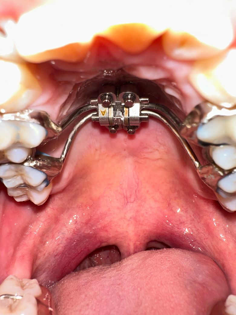현재 사진으로는 정확한 판단이 어렵습니다. 지금으로서는 해당 치과를 방문하여 악궁확장장치인 RPE를 검사해볼 수 밖에 없습니다. 너무 걱정이 된다면 다시 한 번 치과를 방문해보시길 바랍니다.