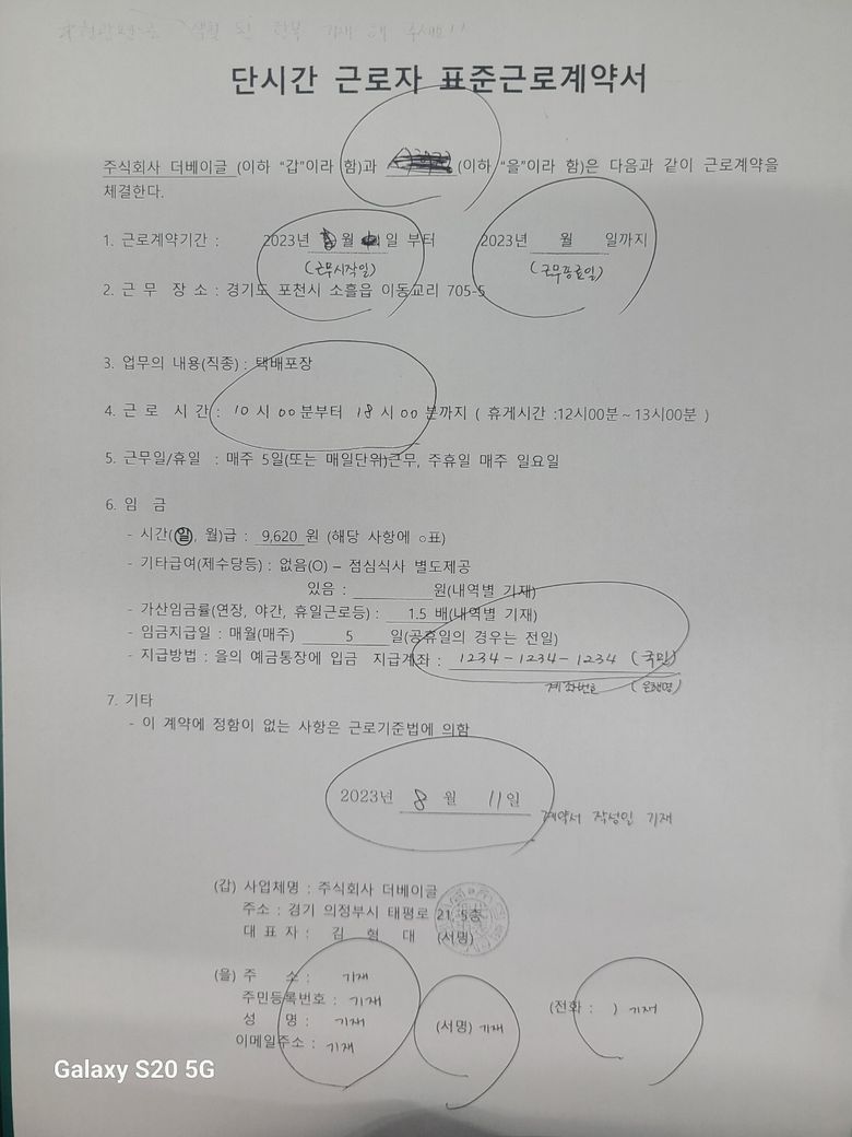 제가 2주동안 단기알바하기로 계약서를 밑에 있는 계약서와 같이 작성하고 월~금 하루에 7시간씩 근무를 하였고, 첫주 금요일까지 출근후 금요일에 일이 끝나고 다음주에는 개인사정으로 못나가겠다고 설명후 중도 퇴사했습니다. 그리고 급여를 확인해보니 주휴수당 없이 급여가 들어왔는데 총 2주 계약하고 1주일만 개근했을경우 주휴수당이 발생하지않나요?