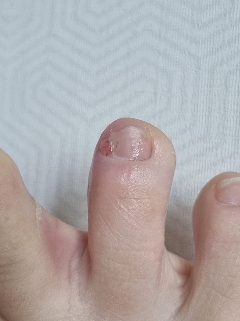 평소에 발톱이 좀 비틀어져 자랐는데 이게 내성발톱이 되어서 발가락을 찔러버렸어요. 이후 신발 신고 나니까 발톱이 깨졌더라구요. 근데 발톱 깨진 사이로 염증(?)앉은 빨간색 살이 통중 동반해서 부어오르네요..