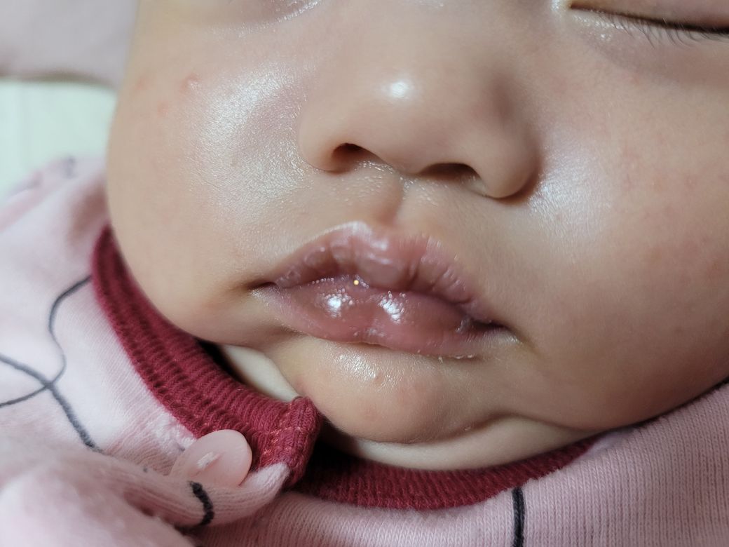 생후 47일차 아기 입술 색깔이 약간 이상해요