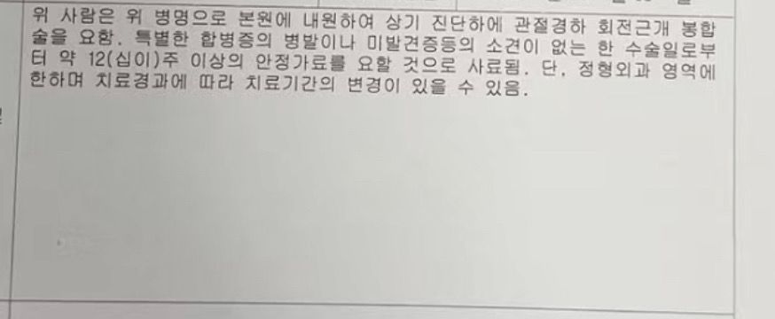직장에 동료무리한 스트레칭으로인항 어깨인대파열