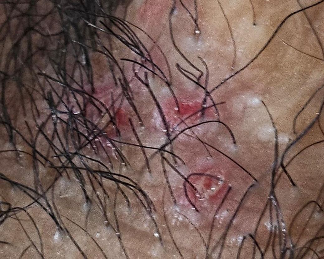 올려주신 사진으로 미루어 모낭염과 헤르페스 감염증의 감별이 필요하겠습니다.
