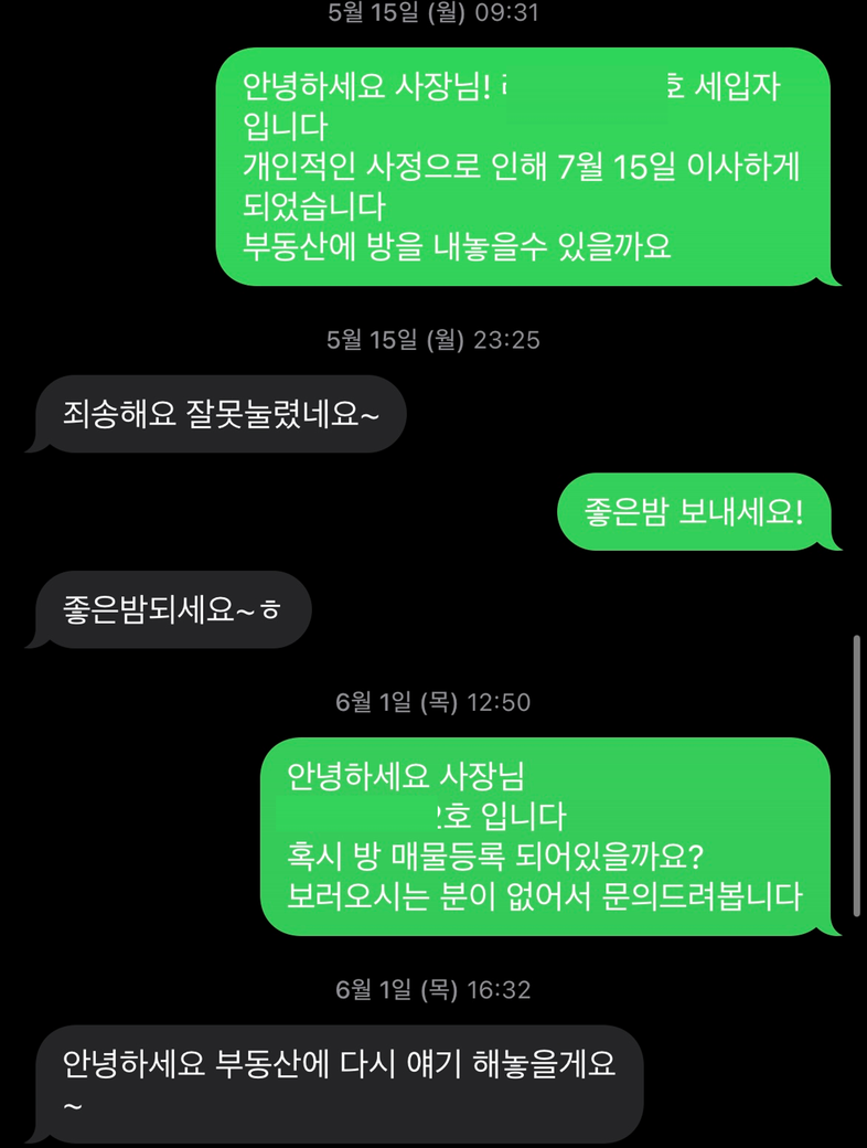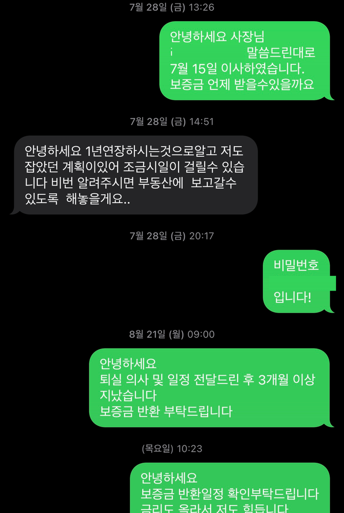 4. ('23년 7월) 퇴실 완료 / 전세금 반환 요청