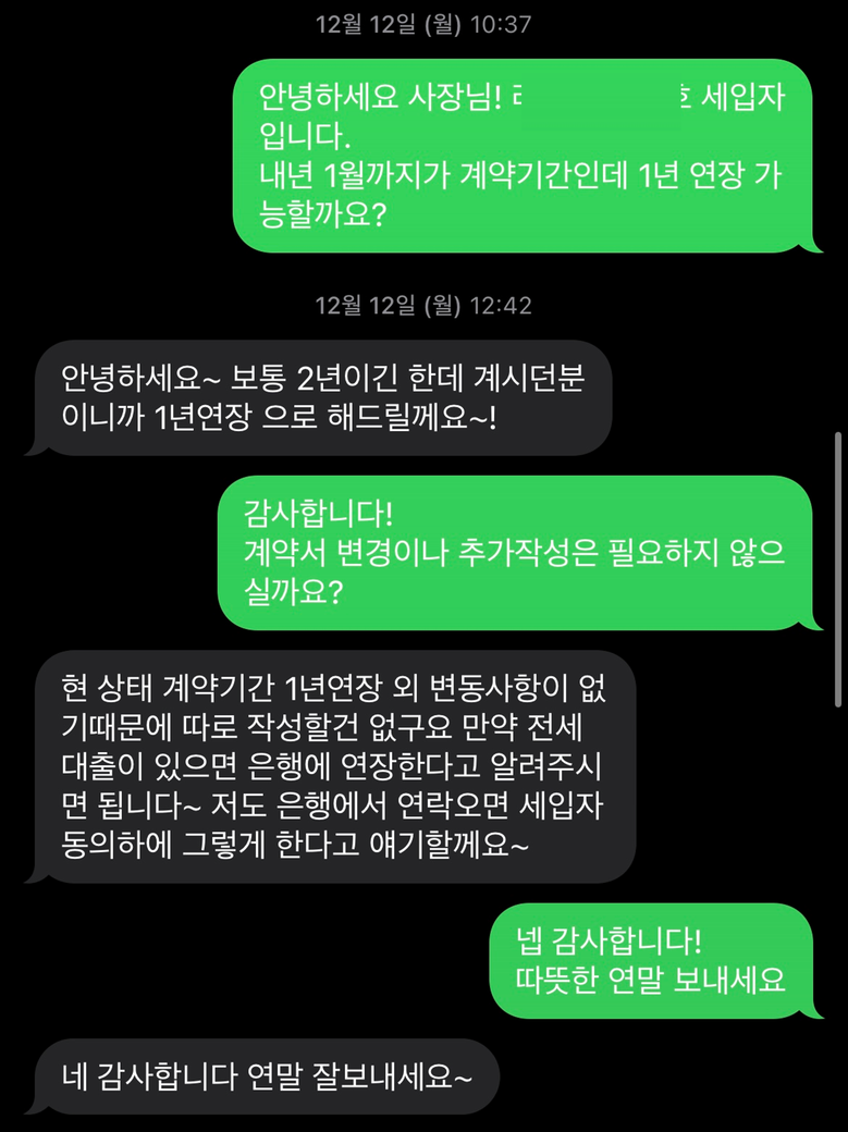 2. ('22년 12월) 전세계약 만료 전 1년 연장 협의 / 벌도 계약서 미작성