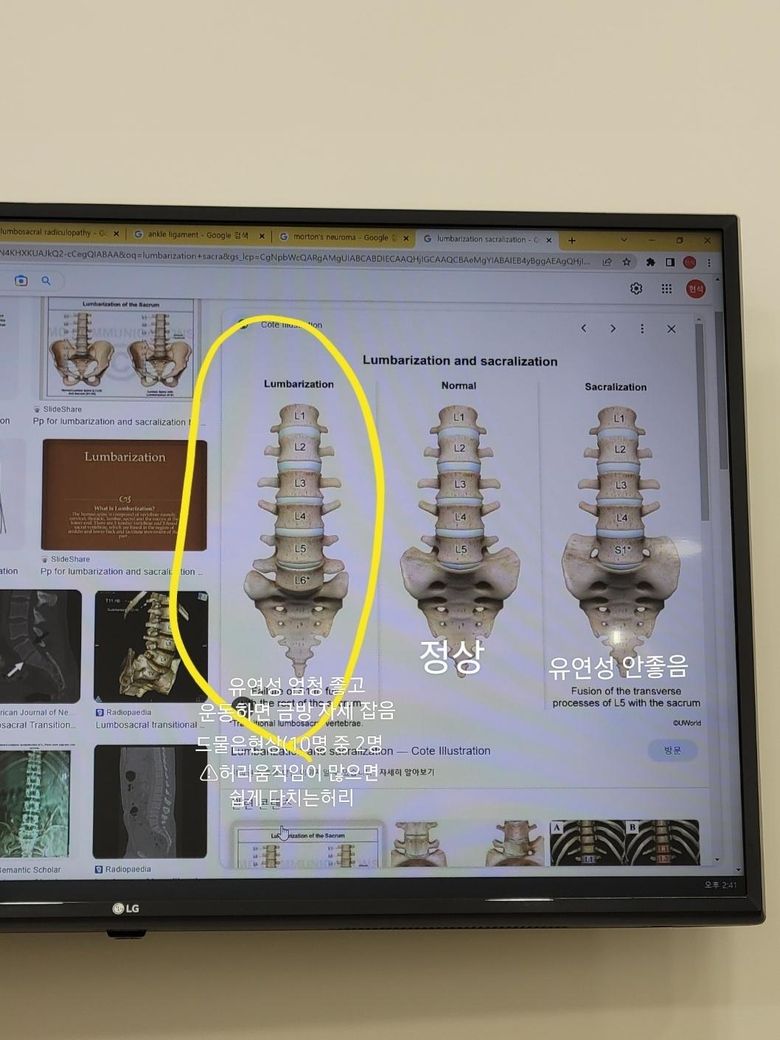 제 허리는 정상과 달리 드물은 상태입니다.