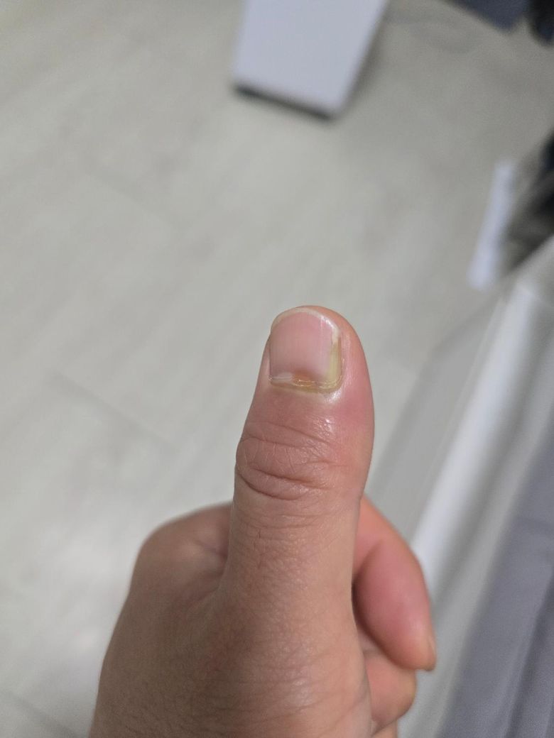사진에 보이는것 처럼 손톱 찍힘후 통증수반후에 사진에 약간 녹색이 보이는데 혹 조갑주의염인가요?