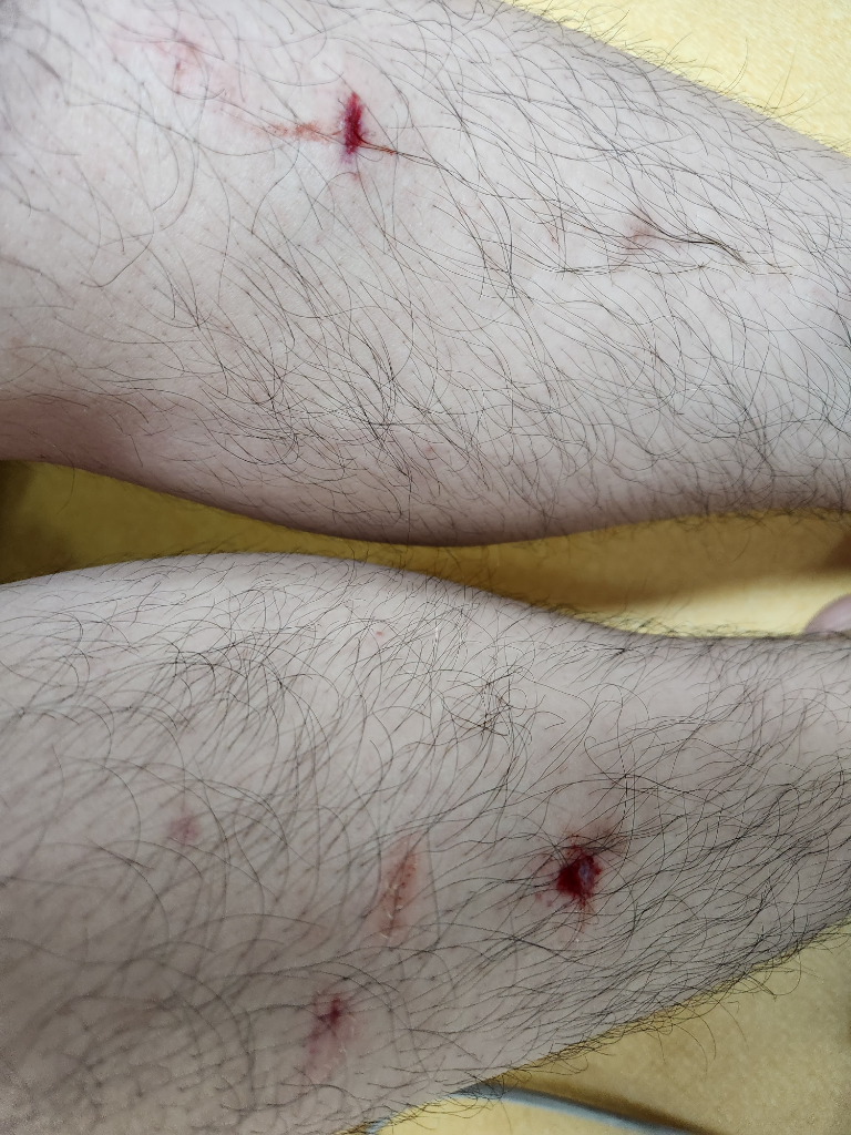가벼운찰과상입니다. 정강이쪽은 근육이나 피하조직이 별로없어 통증이 심하고 오래갈수있습니다. 상처난곳은 적절히 소독을 하고 경과관찰하세요