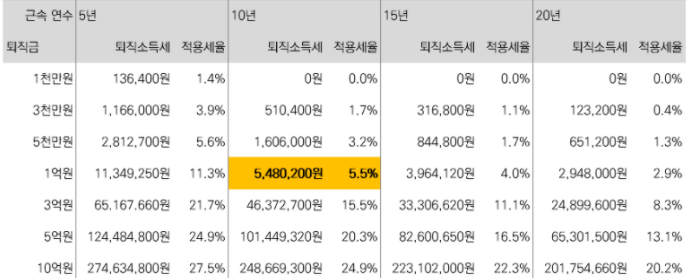퇴직금 지급시 퇴직소득세 요율 어떻게되나요?