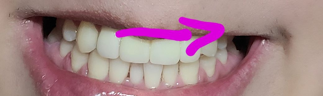 윗니가 오른쪽으로 더 돌아간것 처럼 보여요