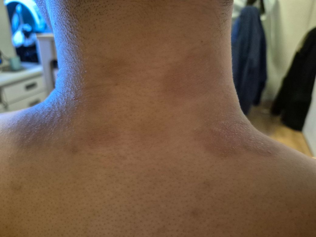 목 뒤에 몇달전부터 간지럽더니 사진 처럼 되었습니다. 아토피인가요?? 일단 병원 갈 예정인데 혹시나 심각한 질병일까봐 걱정되서 질문드립니다.