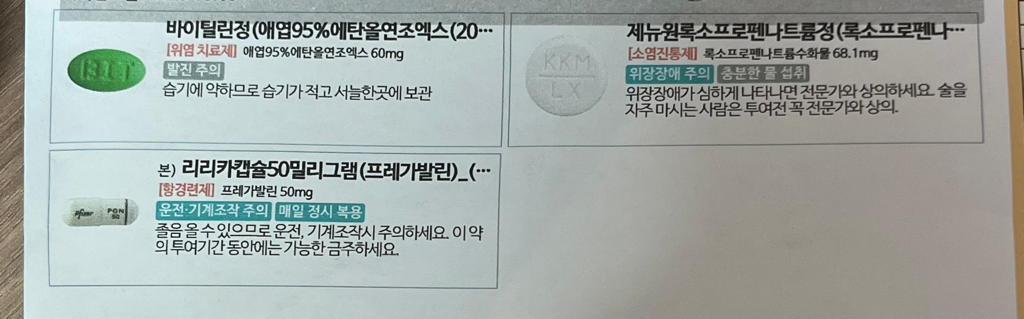 다만 미노씬은 공복에 복용해야 흡수율이 높으므로 미노씬은 식전에 복용하고, 사진의 처방약은 식사 후에 복용하는 것을 권장드립니다.