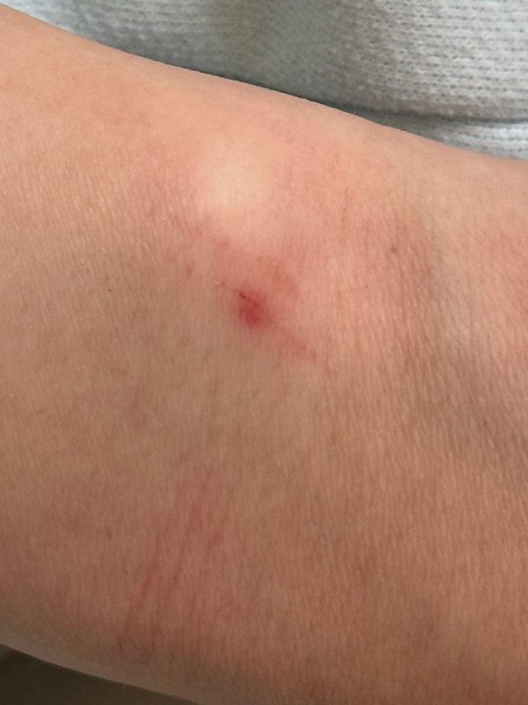 특별한 처치가 필요한 상태는 아니지만 조금 더 안전하게 하려면 항생제 연고 바르고 데일밴드 같은 드레싱 용품으로 덮어놓으시는게 감염의 가능성을 줄일 수 있겠습니다.