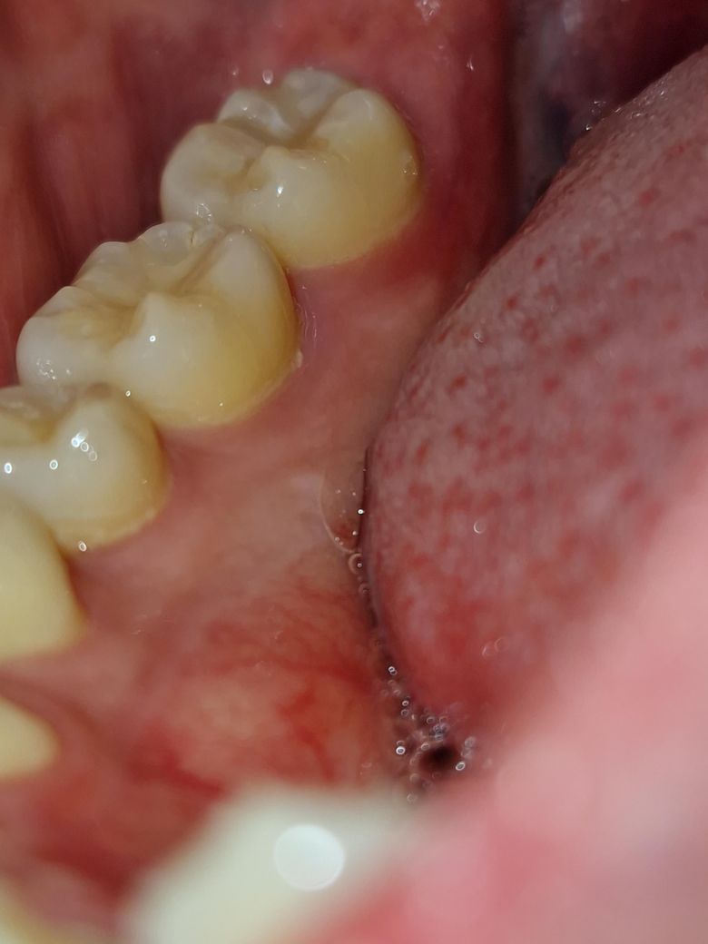 어금니 쪽 잇몸 안쪽이 저렇게 빨개져있고 근처 잇몸이 약간 말랑거리는 느낌이에요. 통증이나 그런거 없고 잇몸 염증도 없었는데