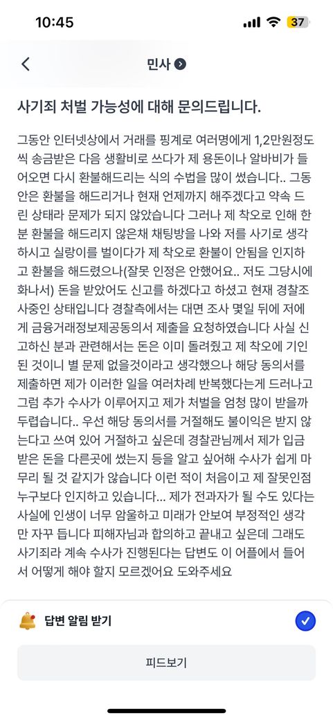 1. 거액도 아니고 2만원 소액에 이미 신고 전에 돌려드린 상태면 신고된 해당 사건에 대해서는 이미 완료된 상태인데도 검찰측에서 그렇게 할 가능성이 있을까요..? 2. 또 경찰관분이 지속적으로 요청하시면 뭐라고 거절할지도 알려주시면 감사하겠습니다