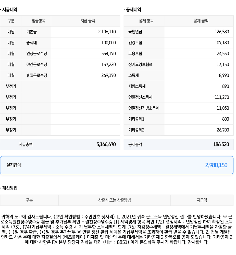 선생님의 경우에 기본급과 중식대만 포함됩니다.