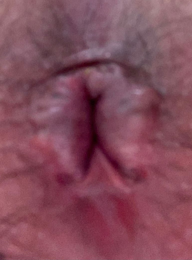 사진상 힘을 주었을 때 항문 둘레를 따라 둥글게 부풀어 나오는 점막성 돌출이 보입니다. 전체 직장벽이 원통형으로 길게 빠져나오는 전형적인 직장탈출증 소견과는 다소 다르고, 항문 가장자리에서 국소적으로 팽창하는 양상으로 보입니다. 임상적으로는 내치핵이 힘을 줄 때 돌출되는 2도에서 3도 치핵 가능성이 더 높아 보입니다.