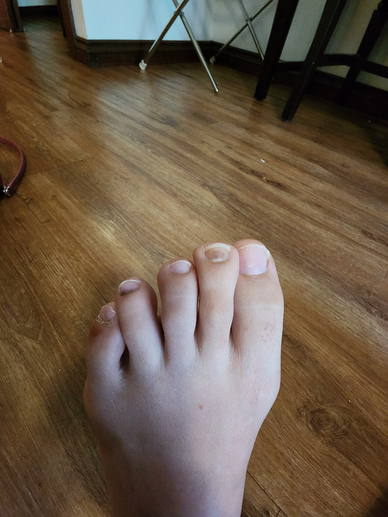 심하게 부어오르지는 않은 것 같지만 발톱쪽으로 멍이 든 것 같고, 통증이 심한 상황이 지속되는 경우에는 정형외과 진찰을 받아보시는게 안전하겠습니다. 말씀하신대로 골절여부를 확인해야 하기 때문입니다.