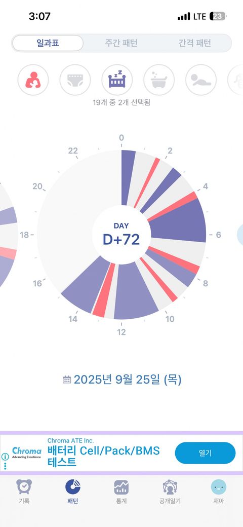 표는 남색이 잠, 빨간색이 모유수유예요