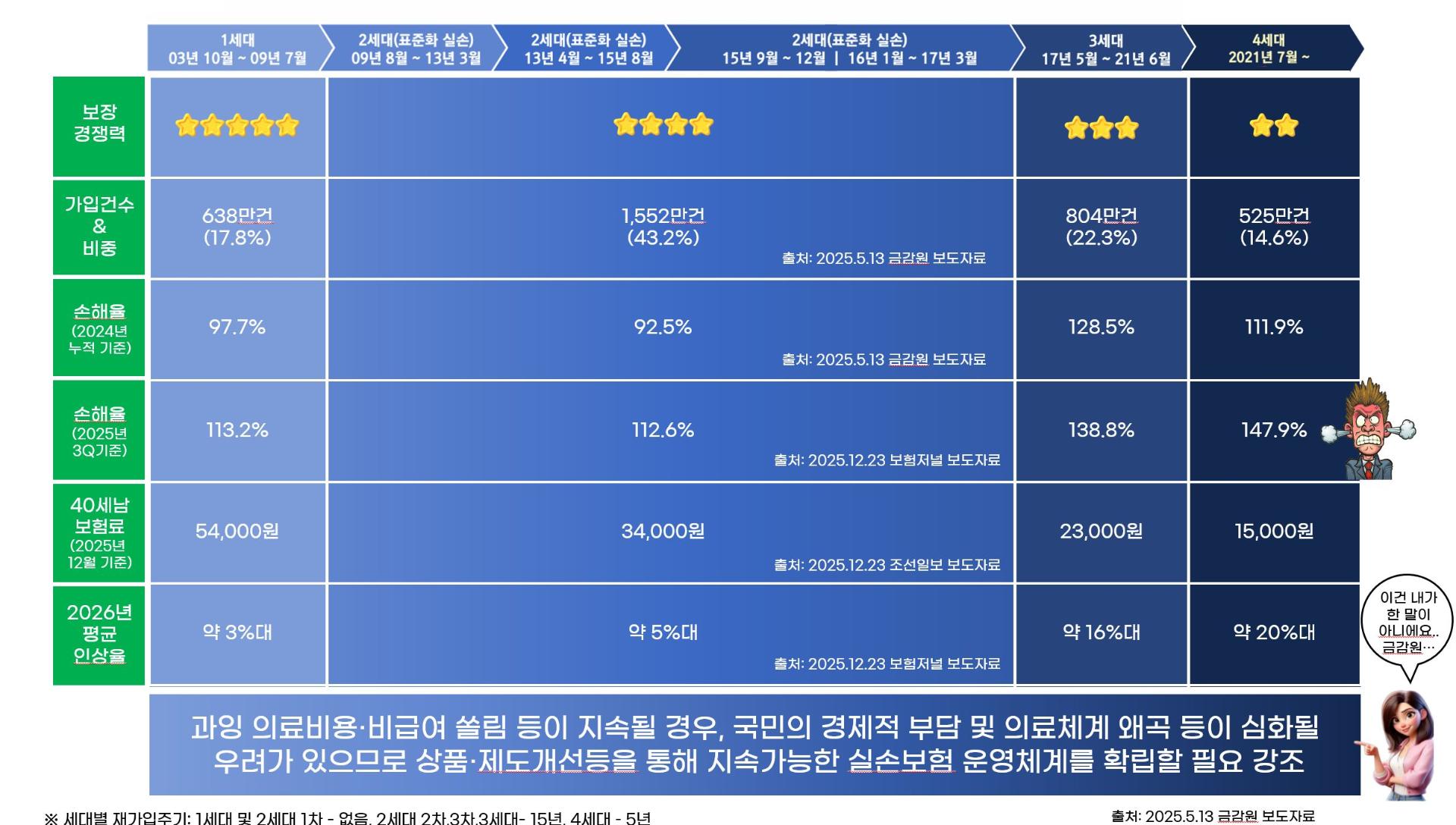 갱신시 보험료 인상폭은 높고 4세대와 비교해서 보험료는 비싸지만