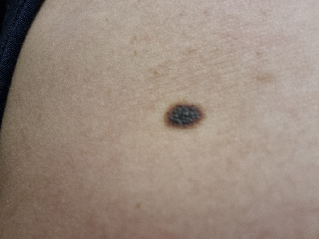 지난 수 년간 변화가 없는 상태라면 단순한 점으로 추정할 수 있습니다. 점의 색은 아주 검은 것부터 갈색, 붉은색 등 다양하게 관찰될수는 있습니다. 걱정스러우신 경우 가까운 피부과를 방문해 진찰받아보시기를 권해드립니다.