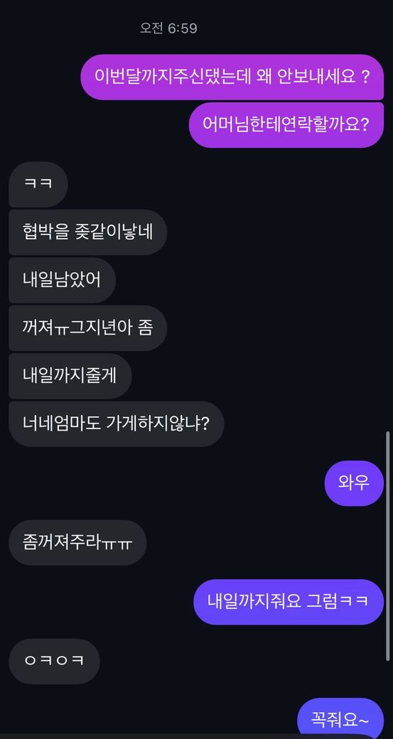 어머니한테 연락을드린다는말을 했더니 협박한다며